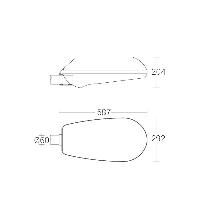 • Luminaire body and top cover made of pressure die cast aluminium featuring high strength and anti corrosion.